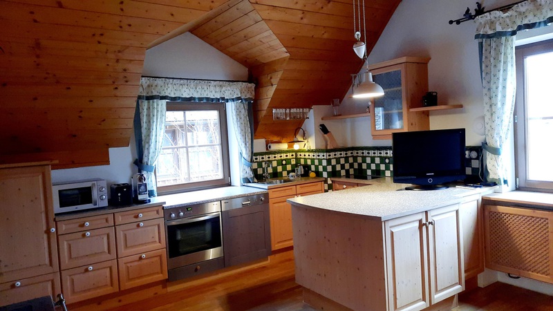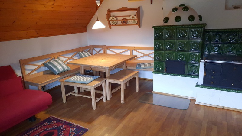 In der 56 m² großen Wohnung befinden sich eine komplett eingerichtete Wohnküche mit Holz- und Kachelofen. Ein Doppelzimmer, Badezimmer mit Dusche und WC, TV, kostenfreies W-LAN.